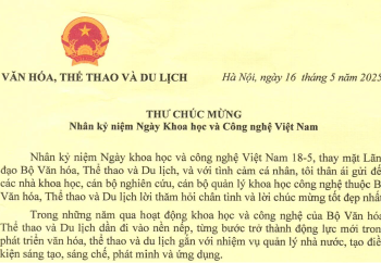 Thư chúc mừng Nhân kỷ niệm Ngày Khoa học và Công nghệ Việt Nam của Bộ trưởng Nguyễn Văn Hùng - Uỷ viên Ban chấp hành Trung ương Đảng, Bộ trưởng Bộ Văn hoá, Thể thao và Du lịch