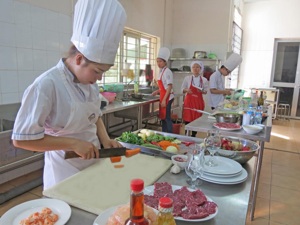 Sinh viên Trường Cao đẳng Du lịch Hải Phòng thực hành nghề kỹ thuật chế biến món ăn.