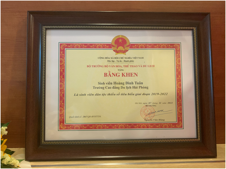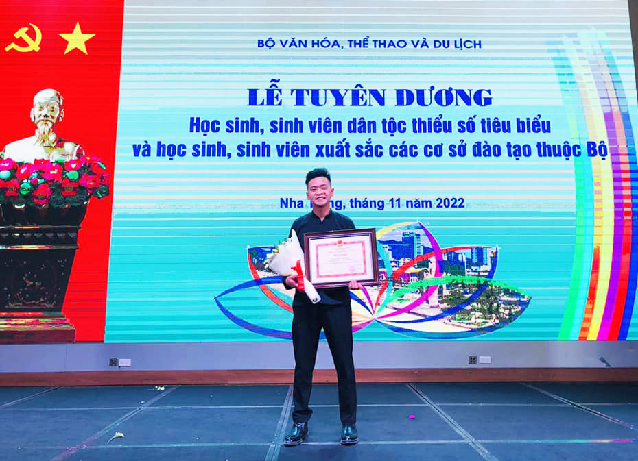 Với sự cố gắng nỗ lực của bản thân, tôi thực sự may mắn khi đã được Bộ Trưởng Bộ Văn Hóa, Thể Thao Và Du lịch tặng Bằng khen Sinh viên dân tộc thiểu số tiêu biểu giai đoạn 2019-2022 tại thành phố Nha Trang xinh đẹp.