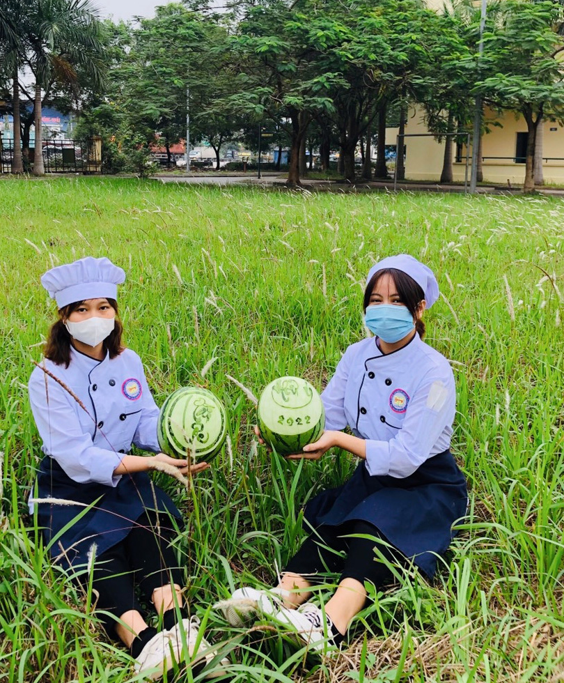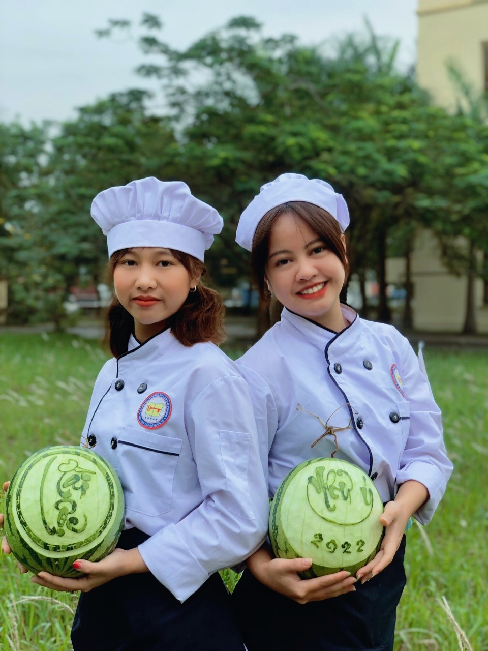 Phạm Quỳnh Như(bìa phải)- Sinh viên lớp CCB12A, Khoa Quản trị chế biến món ăn