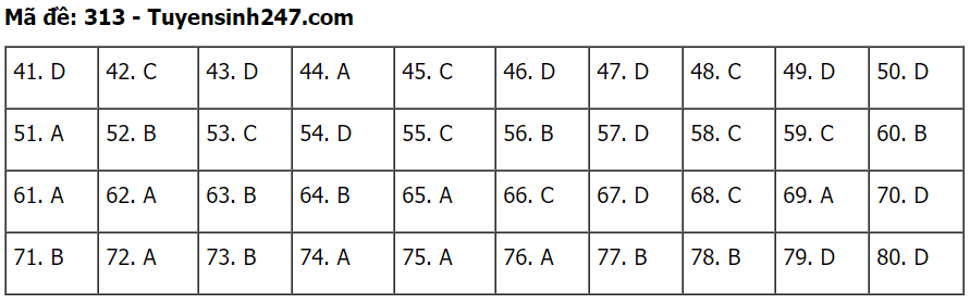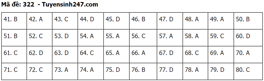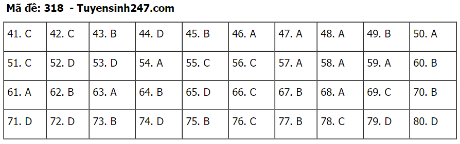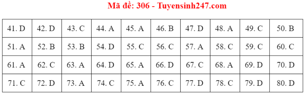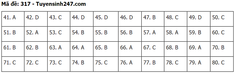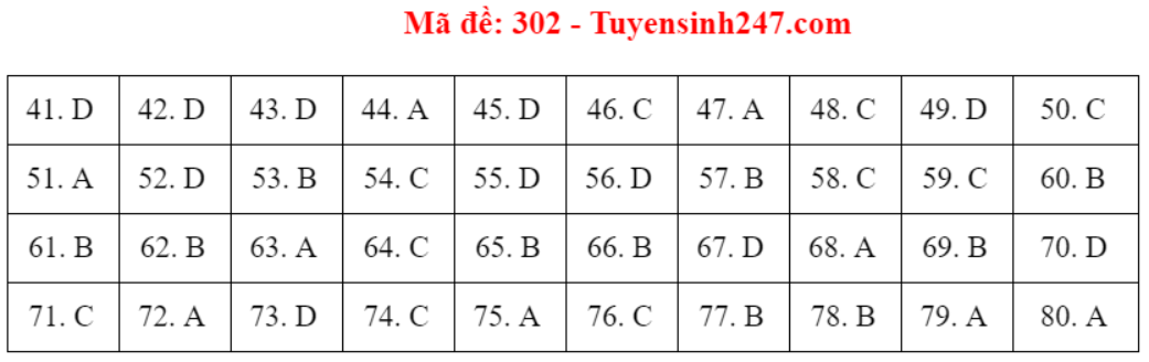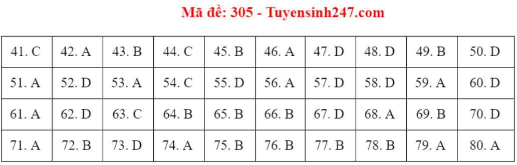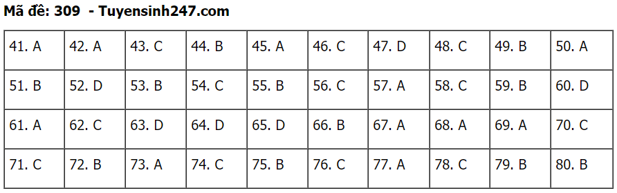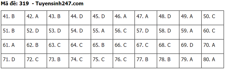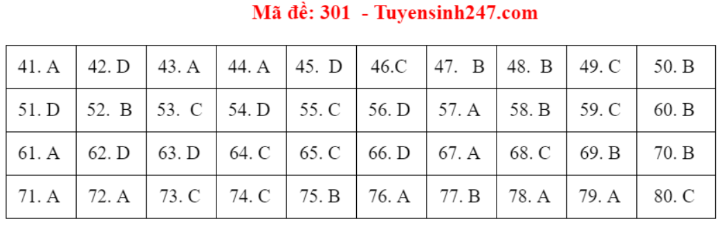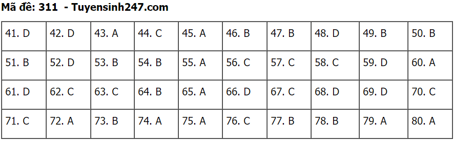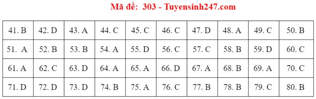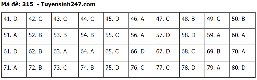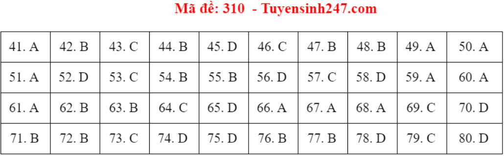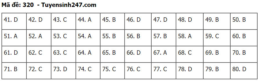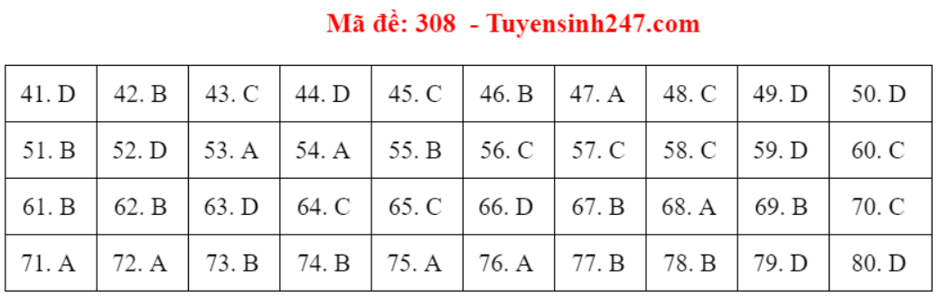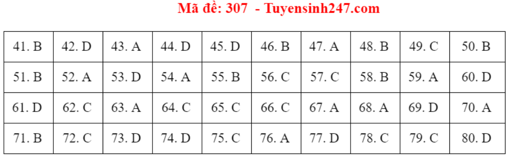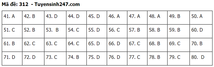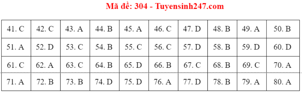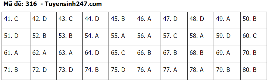 (Lưu ý: Đáp án trên chỉ mang tính chất tham khảo. Đáp án thi tốt nghiệp THPT 2020 chính thức sẽ được Bộ GD&ĐT công bố trong vài ngày tới).