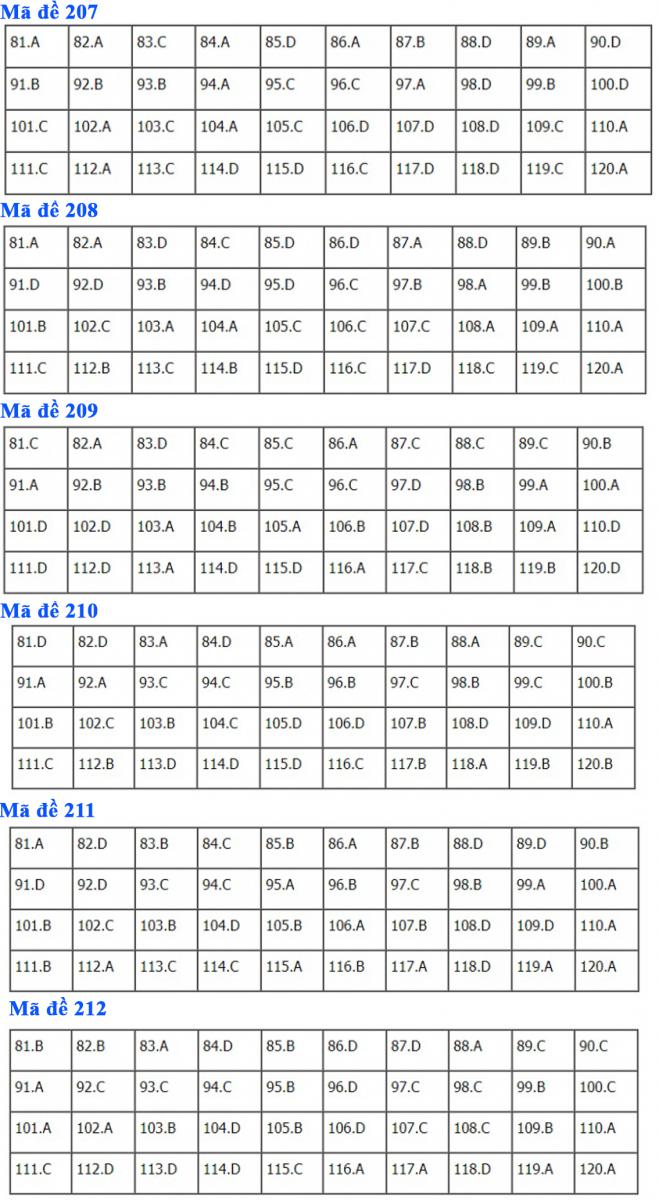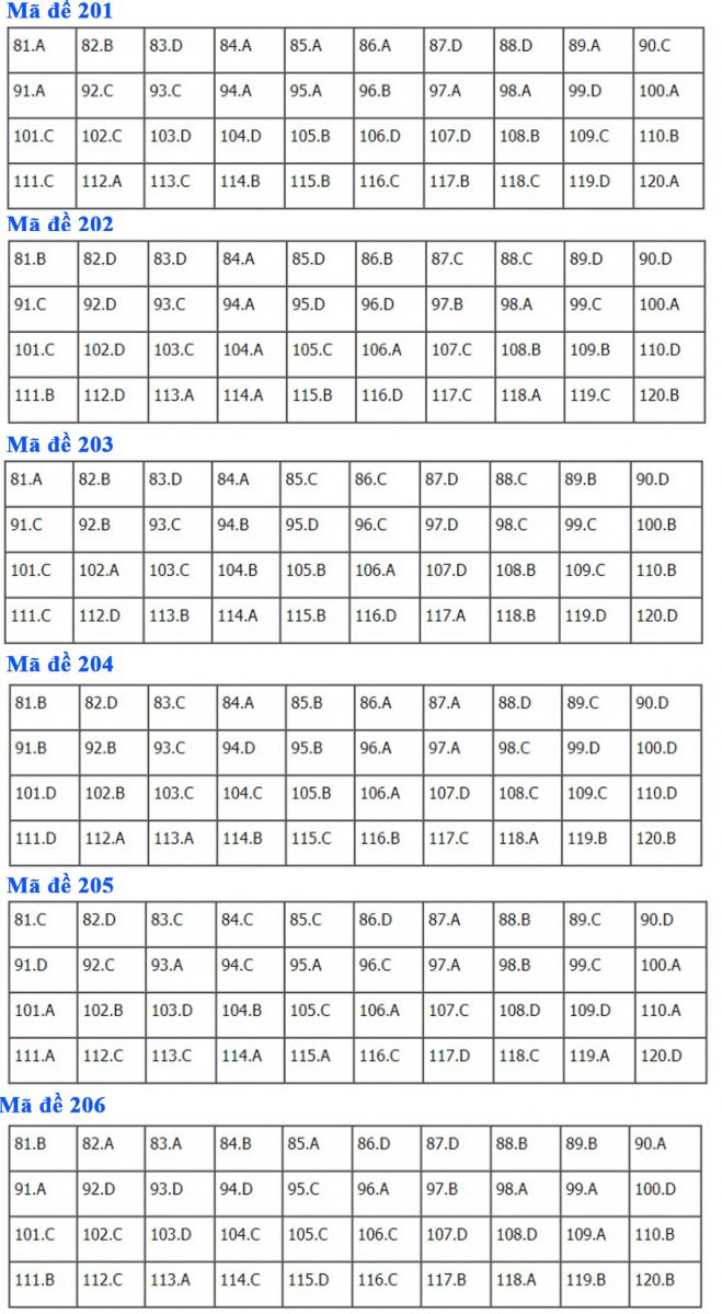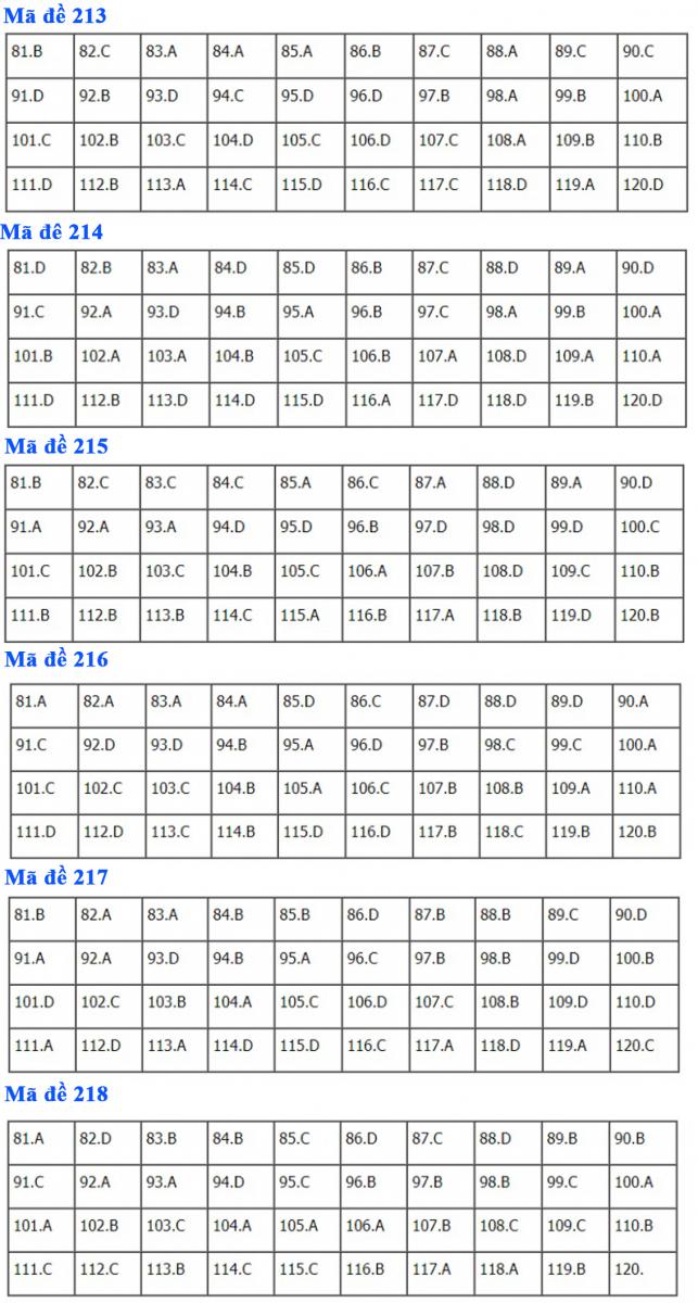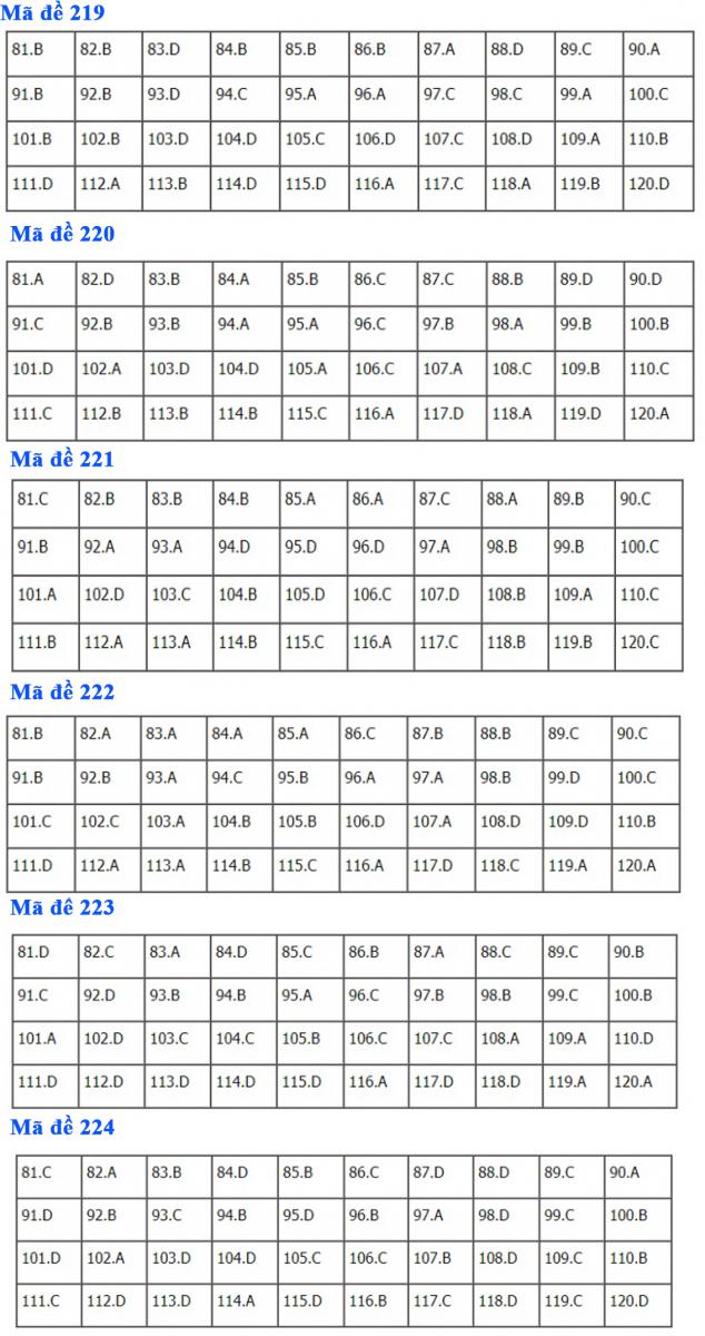 Đáp án đề thi THPT Quốc gia 2020 môn Sinh học mã đề 201 202 203 204 205 206 207 208 209 210 211 212 213 214 215 216 217 218 219 220 221 223 224.