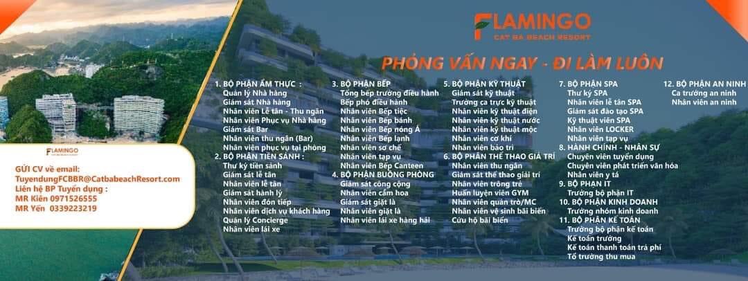 Flamingo Cat Ba beach resort tuyển dụng nhiều vị trí nhân sự.