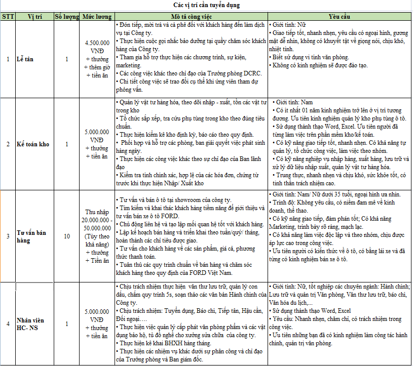 2. Liên hệ nộp hồ sơ: Ms Dung( TP HC-NS): 0904406988/ 0988139698. - Email: ntdung@haiphongford.com.vn or hcns@haiphongford.com.vn