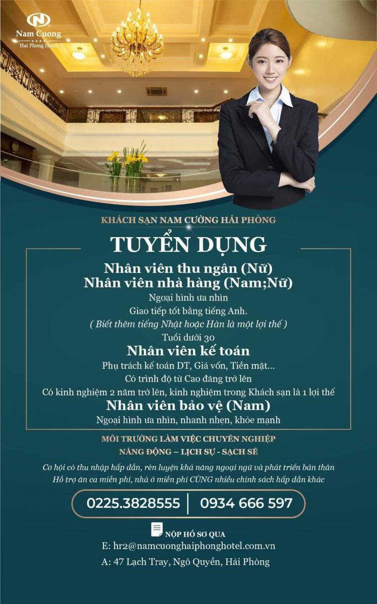 Khách sạn Nam Cường tuyển dụng nhiều vị trí