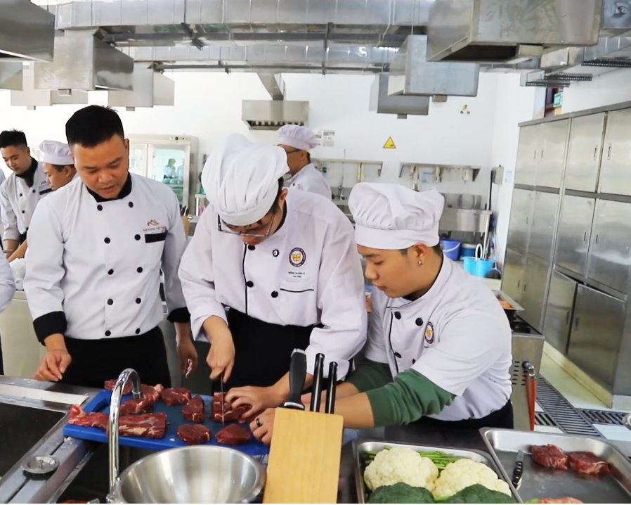 Nhà trường đào tạo theo mô hình đào tạo song hành (vừa tại trường vừa tại doanh nghiệp). Sinh viên học thực hành thời lượng >=70 thời gian học. Sinh viên được học, thực tập tại các du thuyền, khách sạn 3-5*, các khu resort đẳng cấp quốc tế như: Khách sạn Vinpearl; Khách sạn Mercure, Paradise VietNam, Khách sạn Nikko; Flamingo; M'Gallery.... hiện là đối tác của Nhà trường. Với việc áp dụng mô hình đào tạo trên, sinh viên ra trường nắm vững được kiến thức, kỹ năng làm việc thực tế để có thể đáp ứng tốt yêu cầu của doanh nghiệp. Đặc biệt Nhà trường cam kết giới thiệu, bố trí việc làm cho sinh viên sau tốt nghiệp.
