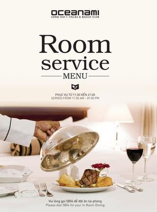 ♦ Room Service Menu - Là thực đơn dành cho dịch vụ phục vụ đồ ăn, thức uống tại buồng khách lưu trú.