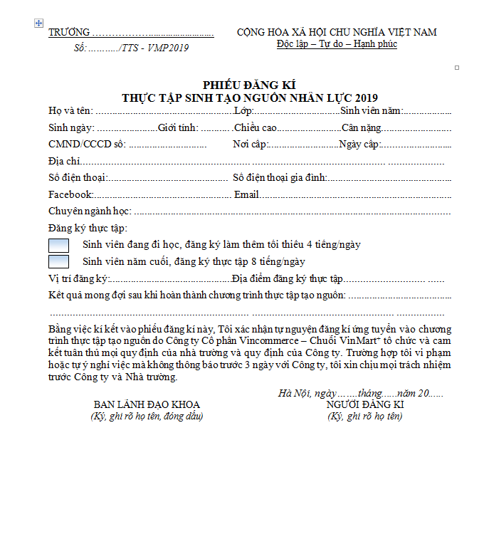 Mẫu đăng ký:
