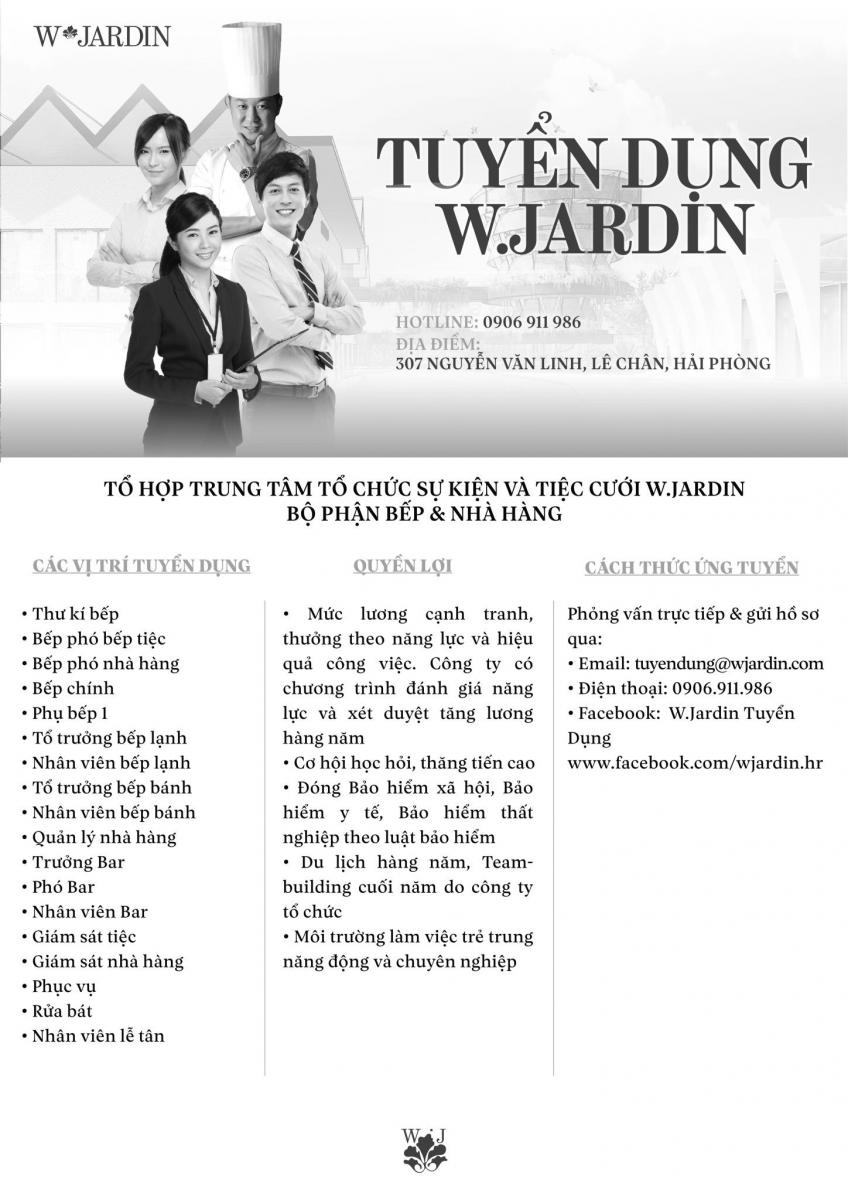 Tuyển dụng nhiều vị trí nhân sự bar, bếp, nhà hàng, lễ tân, giám sát