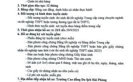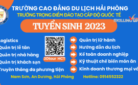 Ngày 14-02-2022, TRƯỜNG CAO ĐẲNG DU LỊCH HẢI PHÒNG - trường trọng điểm đào tạo cấp độ quốc tế, công bố phương án tuyển sinh năm 2023. Theo đó, Nhà trường tuyển sinh 10 ngành đào tạo Trình độ Cao đẳng; 06 ngành liên thông trình độ Trung cấp lên Cao đẳng và 05 ngành đào tạo chương trình Trung cấp kết hợp với học văn hóa trung học phổ thông (THPT).