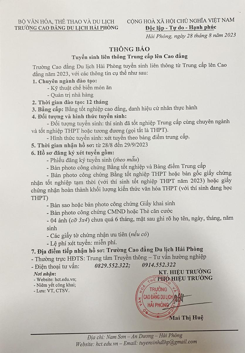 Thông báo tuyển sinh liên thông Trung cấp lên Cao đẳng năm 2023